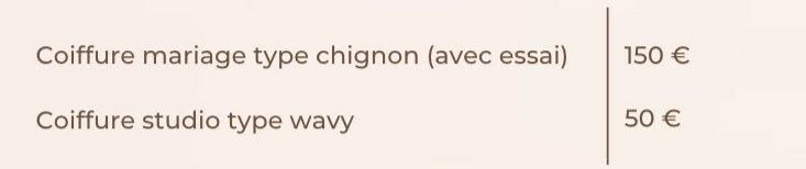 Prix prestation Hair