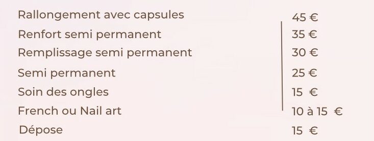 Prix prestation Nails